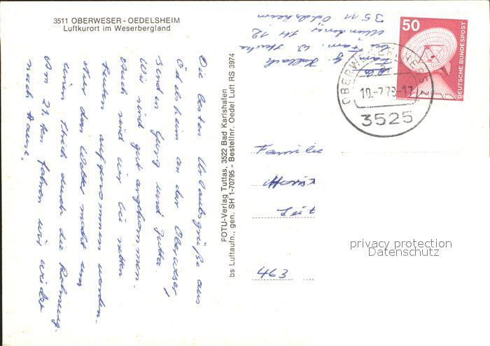 72334147 alte Postkarte Oedelsheim Luftkurort Weserbergland Fliegeraufnahme postalisch gelaufen Erhaltung siehe scans KatCode: 11110006633021