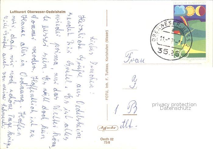 72600418 alte Postkarte Oedelsheim Luftkurort Weserbergland Kirche Fahrgastschiff Weser postalisch gelaufen Erhaltung siehe scans [FriedD77] KatCode: 11110006633021