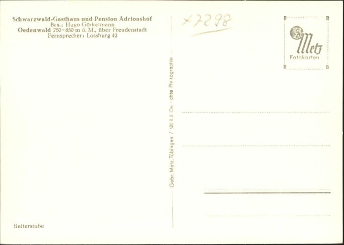 40761020 oedenwald Gasthaus Pension Adrionshof postalisch nicht gelaufen Alte Ansichtskarte Postkarte Katcode 11110008237045
