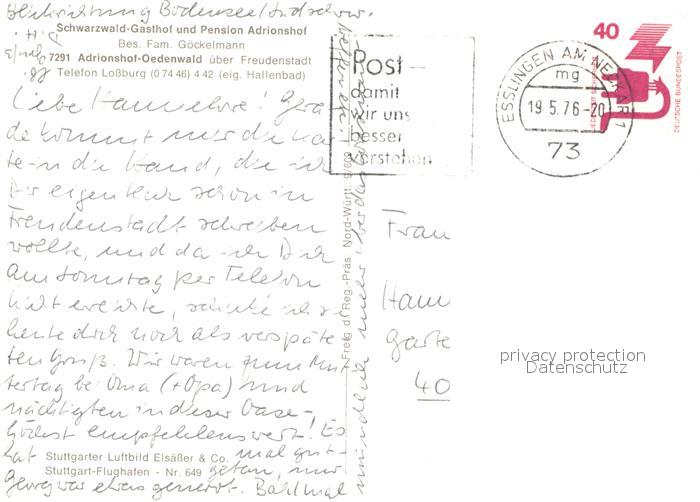 72984182 alte Postkarte oedenwald Schwarzwald Gasthof Adrionshof Fliegeraufnahme postalisch gelaufen Erhaltung siehe scans [WerneD78] KatCode: 11110008237045