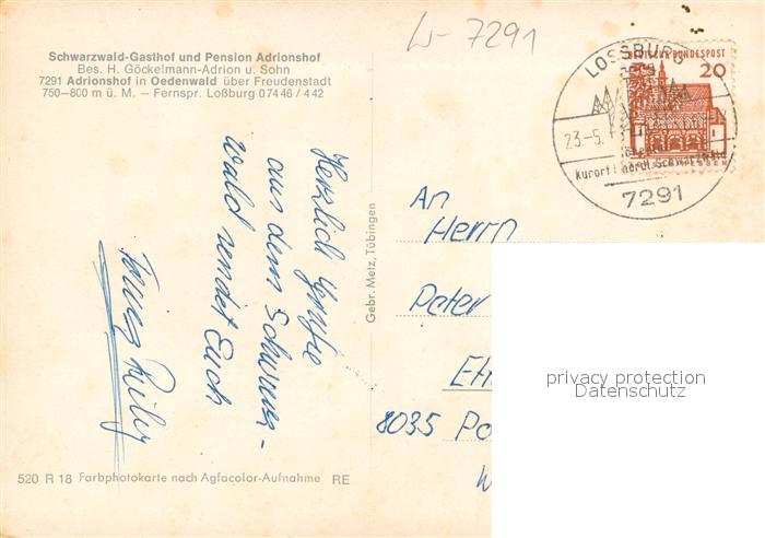 73645168 alte Postkarte oedenwald Schwarzwald Gasthof und Pension Adrionshof postalisch gelaufen Erhaltung siehe scans [WerneD78] KatCode: 11110008237045