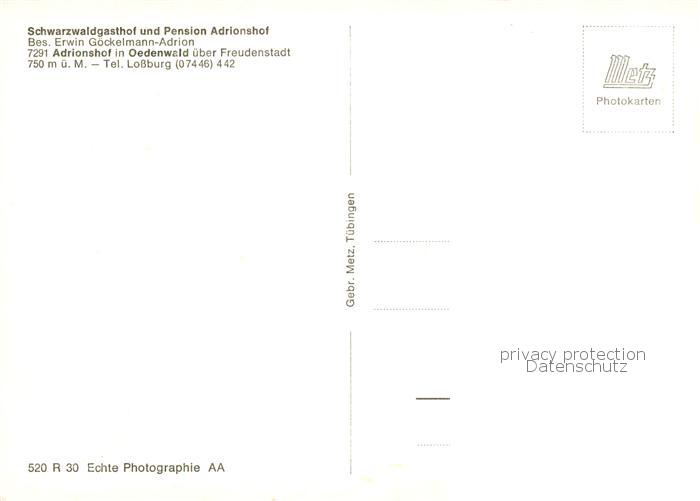 73852842 oedenwald Schwarzwaldgasthof und Pension Adrionshof postalisch nicht gelaufen Erhaltung siehe scans [WerneD78] KatCode: 11110008237045