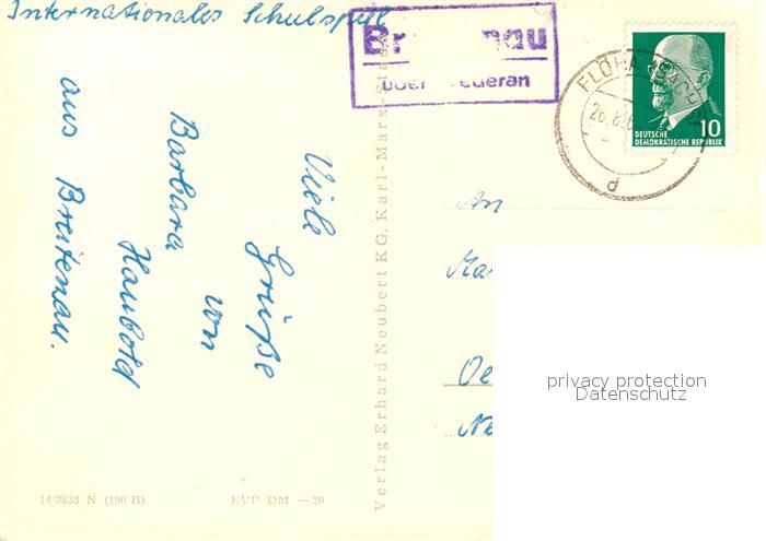 73034134 alte Postkarte Oederan Ernst Thaelmann Strasse Platz der Befreiung Rathaus Panorama postalisch gelaufen Erhaltung siehe scans [KathaD81] KatCode: 11110014177340