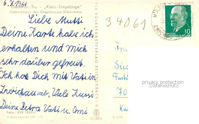 72920042 alte Postkarte Oederan Gebetshaus des Orgelbauers Silbermann postalisch gelaufen Erhaltung siehe scans [WerneD78] KatCode: 11110014177340
