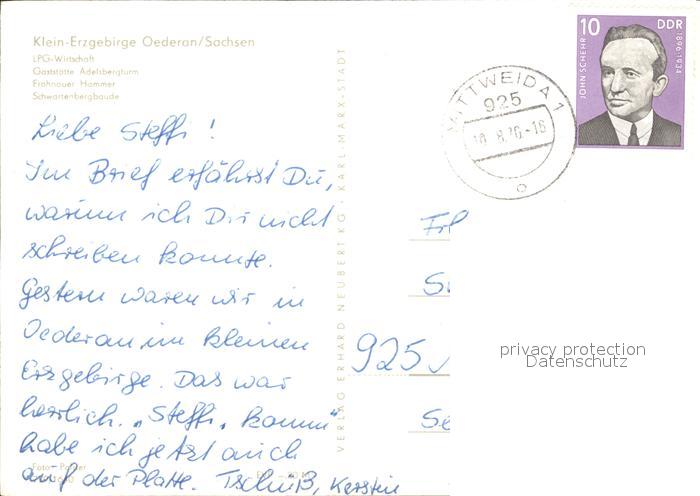 72326605 alte Postkarte Oederan LPG Wirtschaft Gaststaette Adelsbergturm Frohnauer Hammer Schwartenbergbaude postalisch gelaufen Erhaltung siehe scans KatCode: 11110014177340