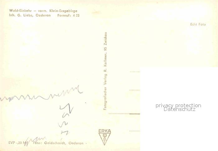 72676162 Oederan Wald Einkehr Gaststaette Restaurant vorm. Klein Erzgebirge postalisch nicht gelaufen Erhaltung siehe scans [FriedD77] KatCode: 11110014177340