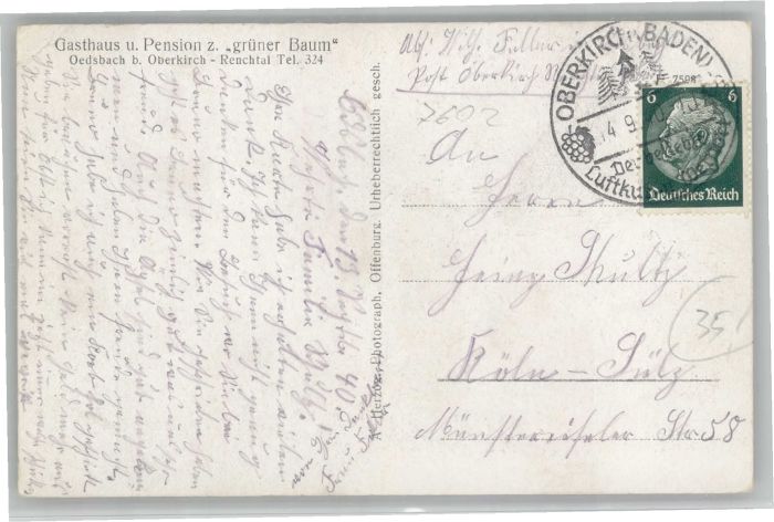 40712944 oedsbach Gasthaus Pension gruener Baum x postalisch gelaufen Alte Ansichtskarte Postkarte alte Postkarte Katcode 11110008317089