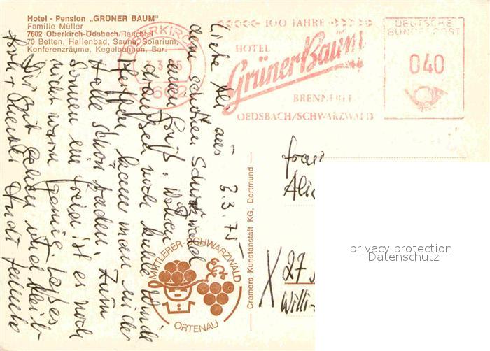 72673093 alte Postkarte oedsbach Hotel Gruener Baum postalisch gelaufen Erhaltung siehe scans [AndreD76] KatCode: 11110008317089
