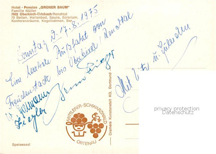 73863431 oedsbach Oberkirch Hotel Pension Gruener Baum Restaurant postalisch nicht gelaufen Erhaltung siehe scans [FriedD77] KatCode: 11110008317089