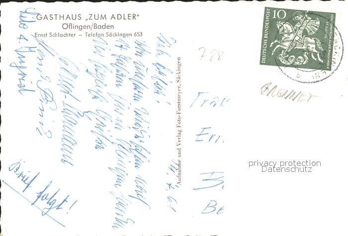 31715307 alte Postkarte oeflingen Gasthaus zum Adler Ernst Schlachter postalisch gelaufen Erhaltung siehe scans KatCode: 11110008337116