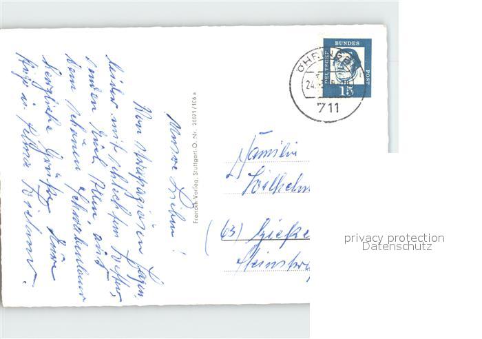 72202747 alte Postkarte oehringen Hohenlohe Teilansicht Kirche Schloss Erker Brunnen Freibad postalisch gelaufen Erhaltung siehe scans KatCode: 11110008126066
