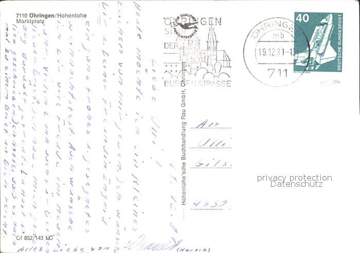 72199522 alte Postkarte oehringen Hohenlohe Weihnachtsstimmung Marktplatz Brunnen postalisch gelaufen Erhaltung siehe scans KatCode: 11110008126066