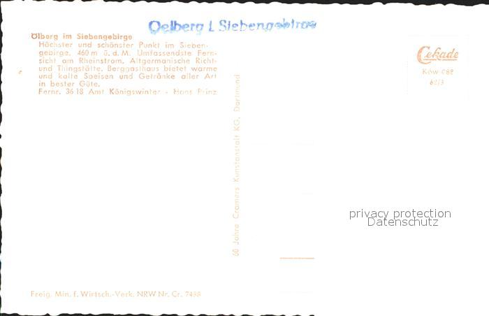 72305083 oelberg Koenigswinter Fliegeraufnahme postalisch nicht gelaufen Erhaltung siehe scans KatCode: 11110005382024