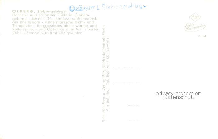 73292613 oelberg Koenigswinter Siebengebirge Berggasthaus Panorama postalisch nicht gelaufen Erhaltung siehe scans [WerneD78] KatCode: 11110005382024