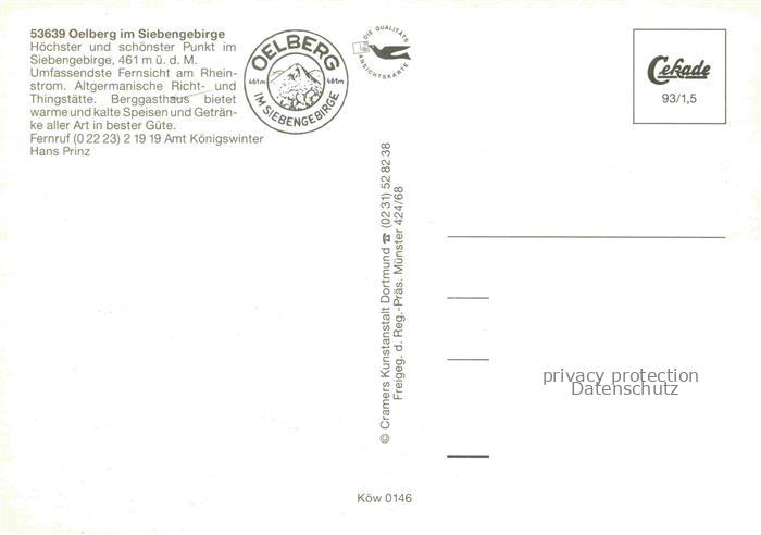 74039538 Oelberg oelberg Koenigswinter Siebengebirge Berggasthaus postalisch nicht gelaufen Fliegeraufnahme Erhaltung siehe scans [FriedD77] KatCode: 11110005382024