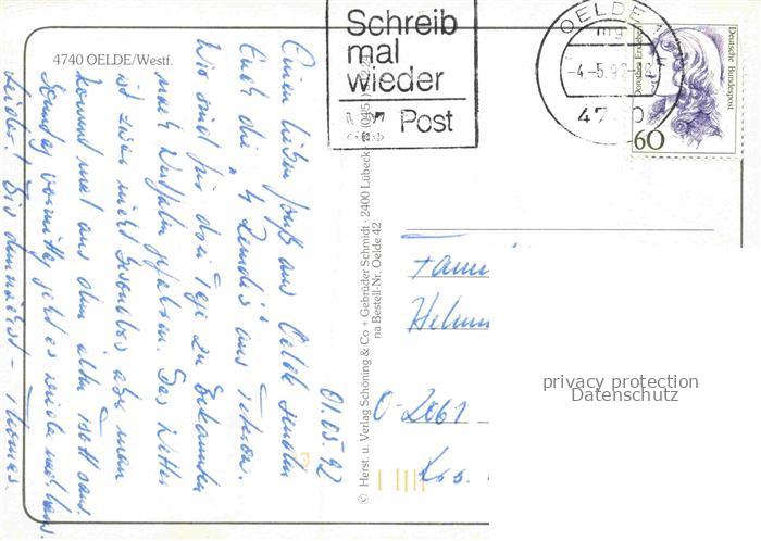 74141992 alte Postkarte Oelde postalisch gelaufen Erhaltung siehe scans [SanaeD93] KatCode: 11110005570028