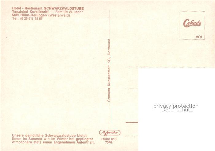 73542977 Oellingen Westerwald Hotel Restaurant Schwarzwaldstube postalisch nicht gelaufen Erhaltung siehe scans [FriedD77] KatCode: 11110007143242