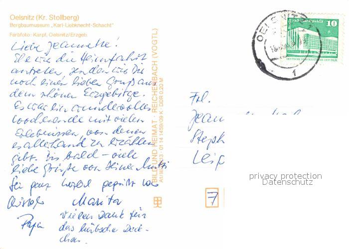 72629374 alte Postkarte Oelsnitz Erzgebirge Bergbaumuseum Karl Liebknecht Schacht postalisch gelaufen Erhaltung siehe scans [WerneD78] KatCode: 11110014188220