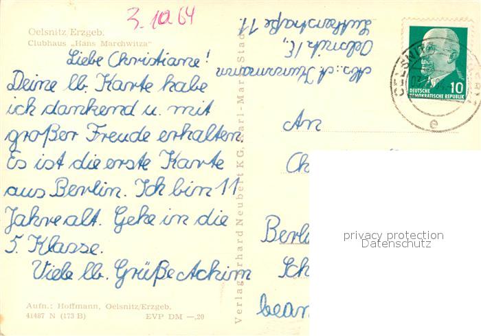 73117047 alte Postkarte Oelsnitz Erzgebirge Clubhaus Hans Marchwitza postalisch gelaufen Erhaltung siehe scans [LiesaD40] KatCode: 11110014188220