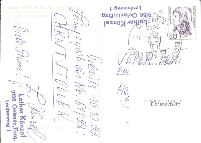 72290764 alte Postkarte Oelsnitz Erzgebirge Kulturhaus Hans Marchwitza Rathaus Rathausplatz postalisch gelaufen Erhaltung siehe scans KatCode: 11110014188220