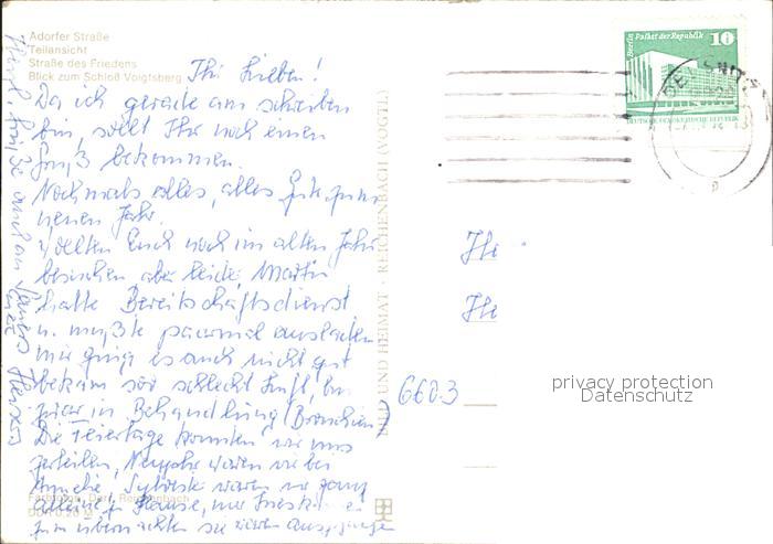 72247109 alte Postkarte Oelsnitz Vogtland Adorfer Strasse Schloss Voigtsberg Strasse des Friedens postalisch gelaufen Erhaltung siehe scans KatCode: 11110014178470