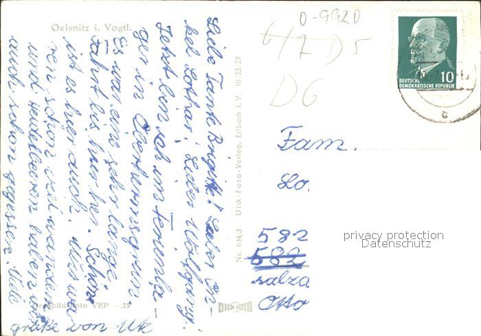 72114724 alte Postkarte Oelsnitz Vogtland Kirche Stadt postalisch gelaufen Erhaltung siehe scans KatCode: 11110014178470