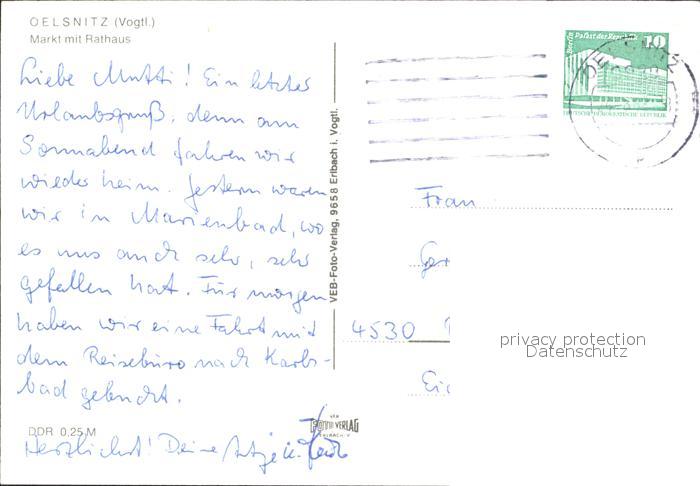 72114560 alte Postkarte Oelsnitz Vogtland Markt mit Rathau postalisch gelaufen Erhaltung siehe scans KatCode: 11110014178470