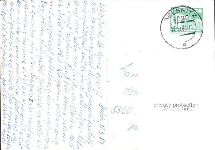 72332095 alte Postkarte Oelsnitz Vogtland Teppichstadt Ernst Thaelmann Platz Egerstrasse Panorama Talsperre Pirk Sperrmauer postalisch gelaufen Erhaltung siehe scans KatCode: 11110014178470