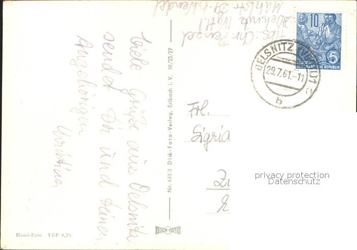 72077397 alte Postkarte Oelsnitz Vogtland Teppichstadt Rathaus Ernst Thaelmann Platz Panorama Schloss postalisch gelaufen Erhaltung siehe scans KatCode: 11110014178470