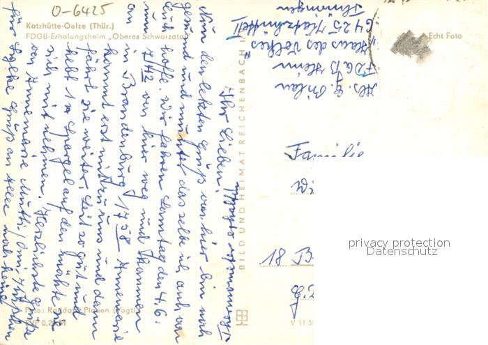 73095978 alte Postkarte Oelze FDGB Erholungsheim Oberes Schwarzatal postalisch gelaufen Erhaltung siehe scans [KathaD81] KatCode: 11110016073037