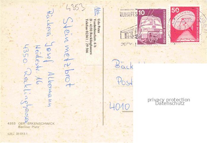 74100636 alte Postkarte Oer-Erkenschwick Berliner Platz postalisch gelaufen Erhaltung siehe scans [WerneD78] KatCode: 11110005562028