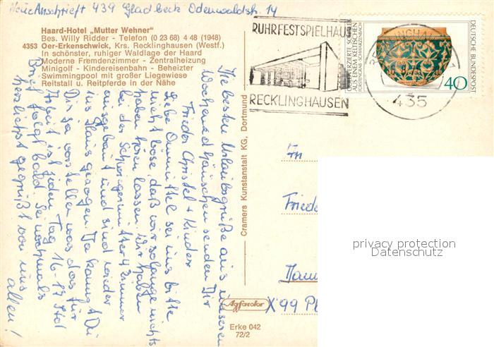 73663764 alte Postkarte Oer-Erkenschwick Haard-Hotel Mutter-Wehner postalisch gelaufen Erhaltung siehe scans [LiesaD40] KatCode: 11110005562028
