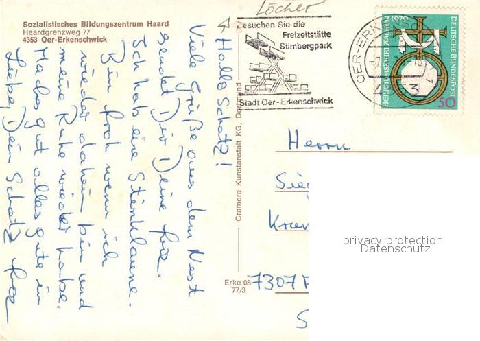 73203256 alte Postkarte Oer-Erkenschwick Sozialistisches Bildungszentrum Haard postalisch gelaufen Erhaltung siehe scans [PaolaD17] KatCode: 11110005562028