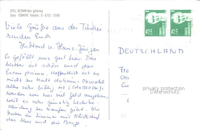 old postcard oeren Otel Keskin den goeruenues postalisch gelaufen Erhaltung siehe scans