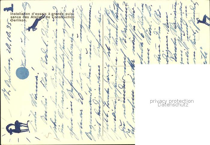11641529 Oerlikon ZH Installation d essais a grande puissance des Ateliers de Construction postalisch nicht gelaufen Alte Ansichtskarte Postkarte hz_F Katcode 11470260920586