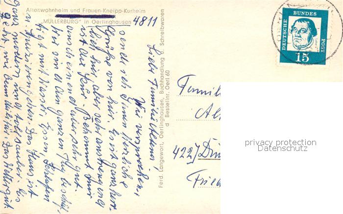 73333641 alte Postkarte Oerlinghausen Altenwohnheim Frauen Kneipp Kurheim Muellerburg postalisch gelaufen Erhaltung siehe scans [FriedD77] KatCode: 11110005766056