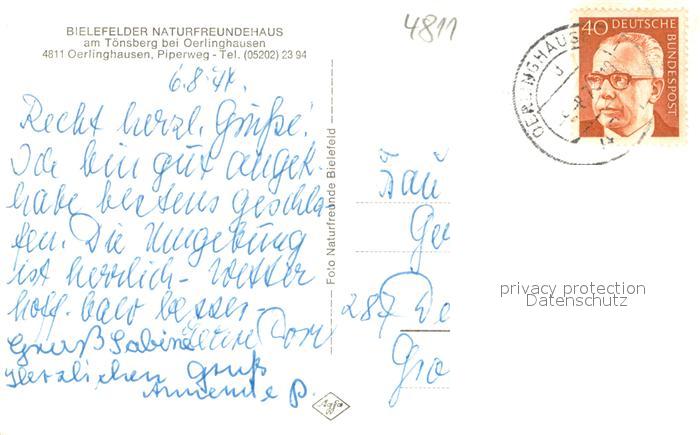 73705754 alte Postkarte Oerlinghausen Bielefelder Naturfreundehaus postalisch gelaufen Erhaltung siehe scans [WerneD78] KatCode: 11110005766056