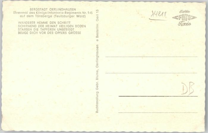 40685937 Oerlinghausen Ehrenmal Königs-Infanterie-Regiment Nr. 145 KatCode 11110005766056