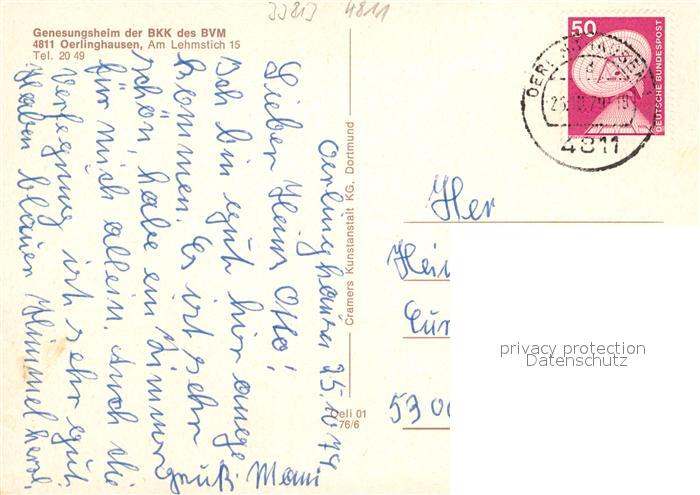 73122045 alte Postkarte Oerlinghausen Genesungsheim BKK postalisch gelaufen Erhaltung siehe scans [NatalD47] KatCode: 11110005766056
