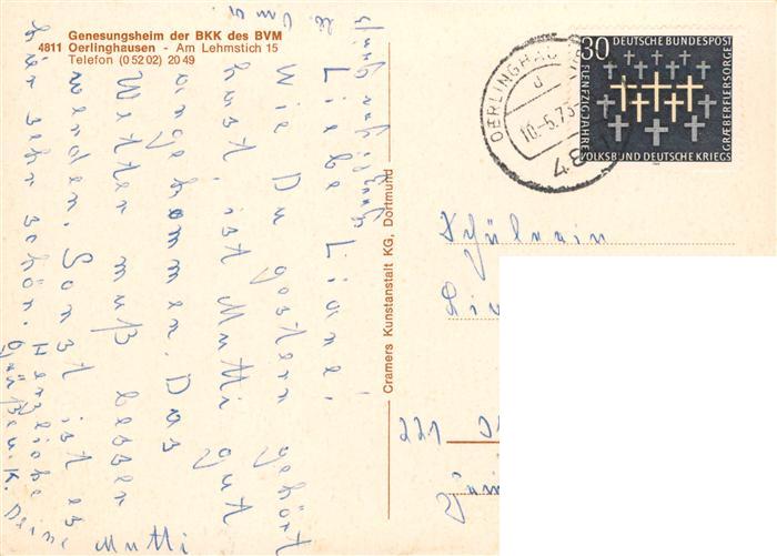 73904999 alte Postkarte Oerlinghausen Genesungsheim der BKK des BVM postalisch gelaufen Erhaltung siehe scans [WerneD78] KatCode: 11110005766056