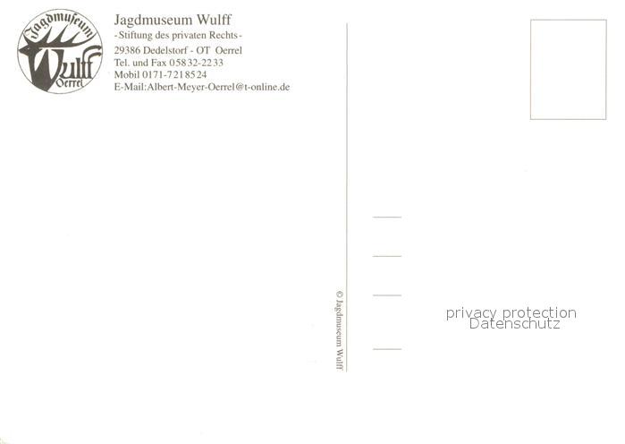 73228625 Oerrel Wittingen Niedersachsen Jagdmuseum Wulff postalisch nicht gelaufen Erhaltung siehe scans [NatalD47] KatCode: 11110003151007