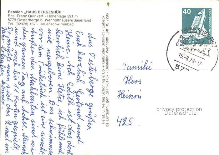72200870 alte Postkarte Oesterberge Pension Haus Bergeshoeh Fliegeraufnahme postalisch gelaufen Erhaltung siehe scans KatCode: 11110005958016