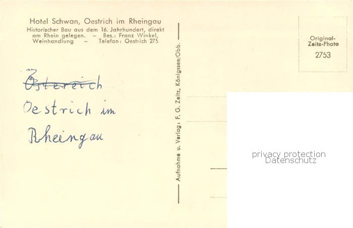 73777998 Oestrich-Winkel Ansicht vom Rheinufer aus Hotel Schwan Kirche postalisch nicht gelaufen Erhaltung siehe scans [FriedD77] KatCode: 11110006439012