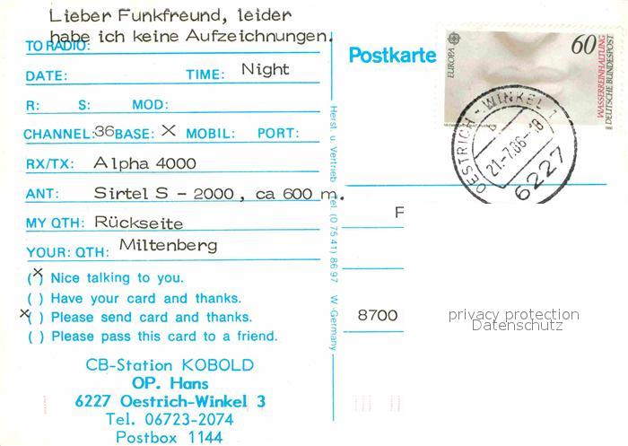 72825204 alte Postkarte Oestrich-Winkel German CB Station Kobold postalisch gelaufen Funkerkarte Erhaltung siehe scans [FriedD77] KatCode: 11110006439012
