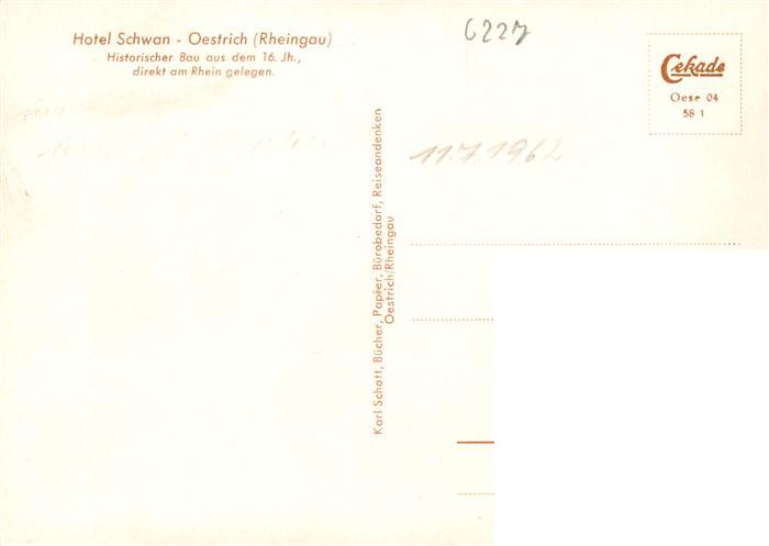 73935970 Oestrich-Winkel Hotel Schwan Kirche postalisch nicht gelaufen Erhaltung siehe scans [FriedD77] KatCode: 11110006439012