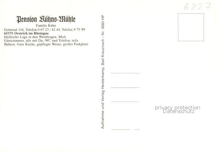 73658666 Oestrich-Winkel Pension Kuehn’s Muehle Gaststaette Terrasse Weinberge postalisch nicht gelaufen Erhaltung siehe scans [FriedD77] KatCode: 11110006439012