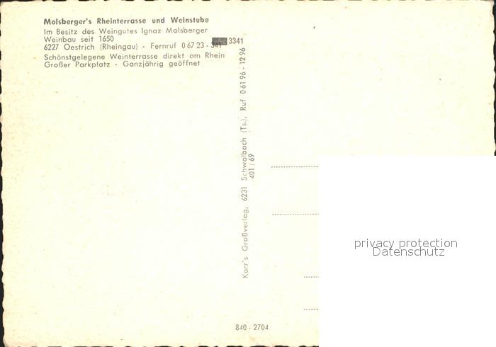 71972853 Oestrich-Winkel Rheinterrasse Molsberger postalisch nicht gelaufen Erhaltung siehe scans KatCode: 11110006439012