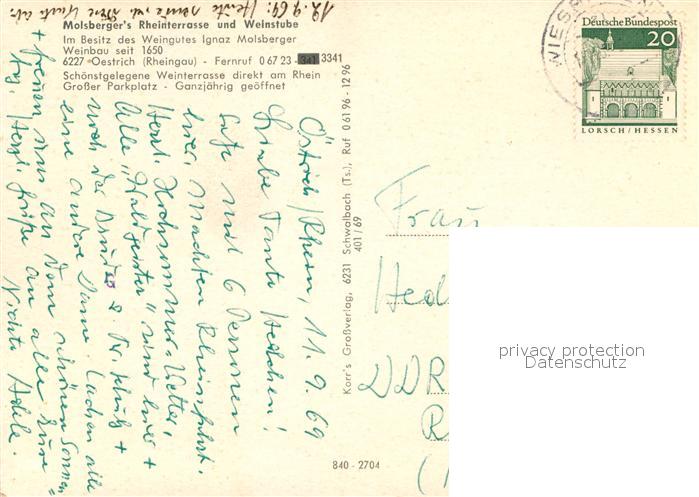 72925514 alte Postkarte Oestrich-Winkel Rheinterrasse Molsberger postalisch gelaufen Erhaltung siehe scans [NatalD47] KatCode: 11110006439012