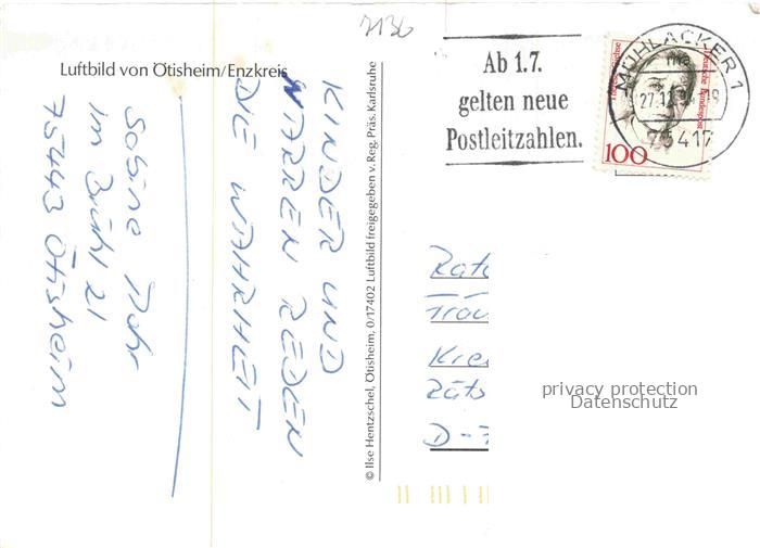 74054150 alte Postkarte oetisheim Enzkreis BW Fliegeraufnahme postalisch gelaufen Erhaltung siehe scans [FriedD77] KatCode: 11110008236050