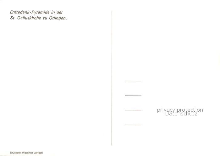 73868019 oetlingen Weil am Rhein St Galluskirche Erntedank Pyramide postalisch nicht gelaufen Erhaltung siehe scans [WerneD78] KatCode: 11110008336091